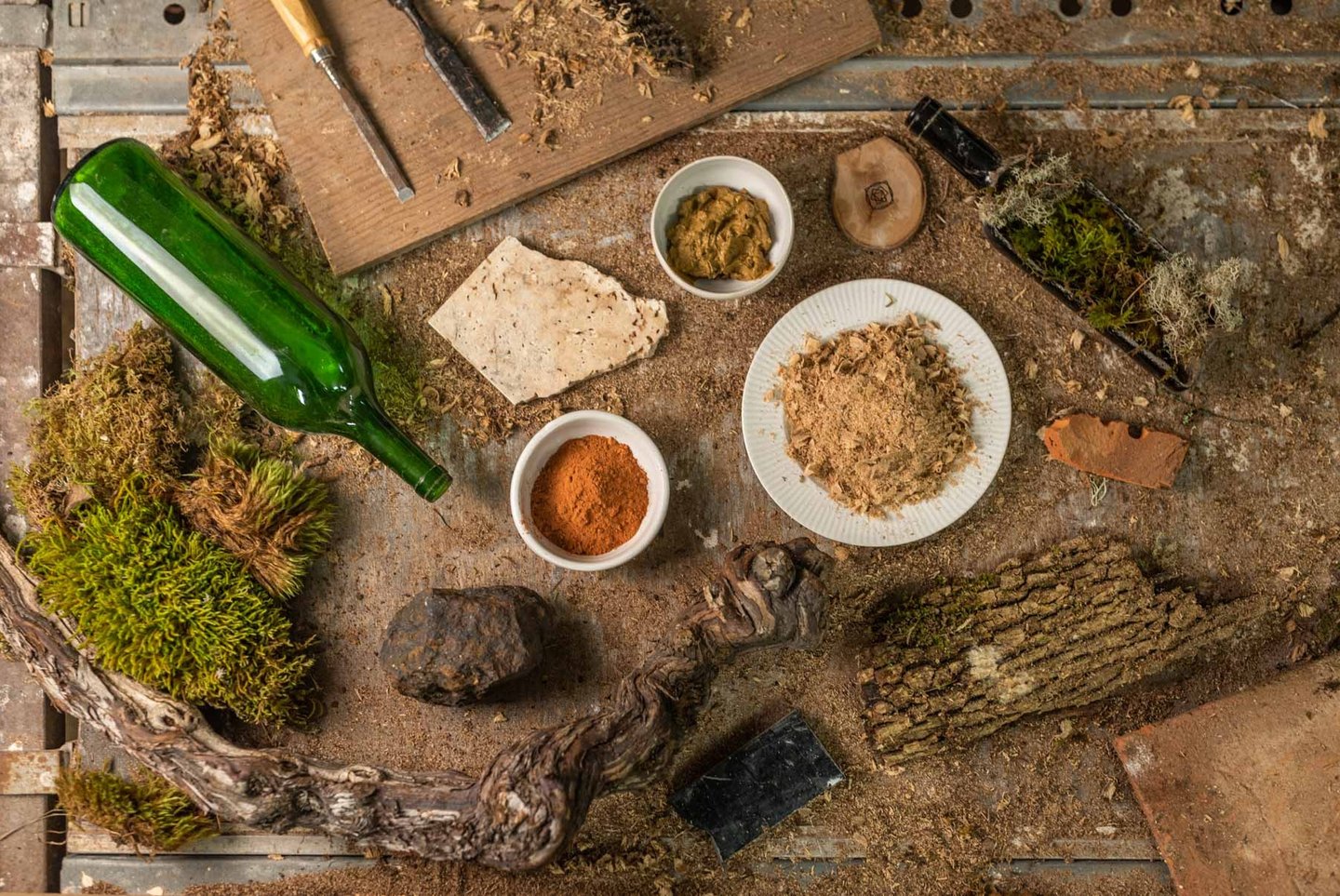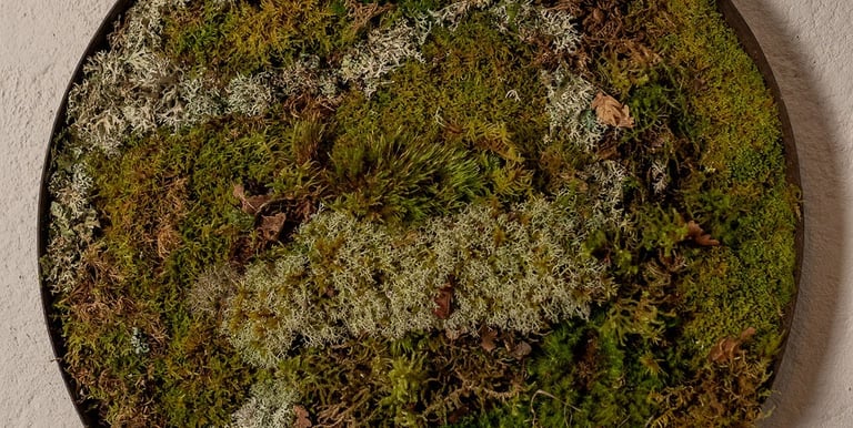 Tableaux réalisés avec des mousses et lichens issus parcelles des jardins de lumière