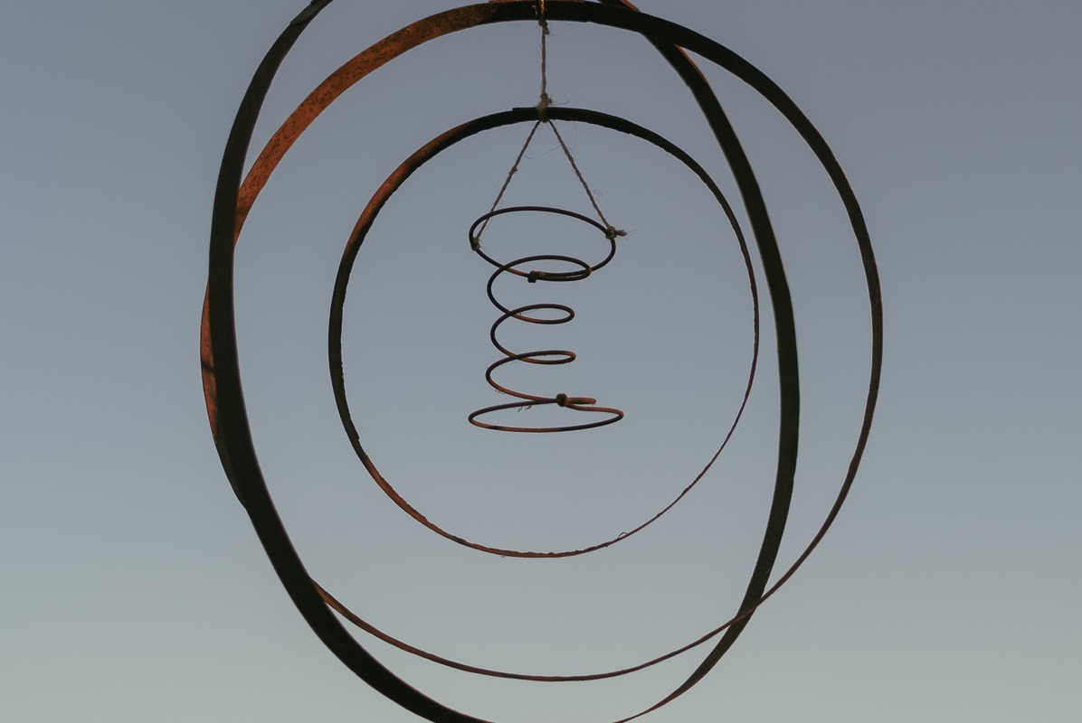 Sculptures cinétiques réalisés avec des materiaux naturels et des objets recyclés